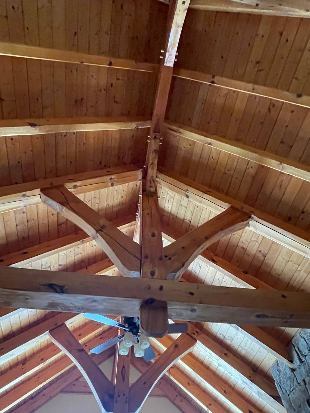 “We loved the home from the first time we saw it and still do! The design of the house provides outstanding utilization of space and comfortable livability. Quality of materials and workmanship stand out everywhere. My favorites things about our Michigan home. Stonework on the fireplaces is warm and inviting. Kitchen is large with beautiful wooden cabinets and extra-large granite island which provide slots of space for food preparation. The upstairs guest shower is made of interesting stone tiles. The vaulted ceiling is very appealing and finished with beautiful wood pine and timber frame posts. Bedrooms are large and an extra-large room upstairs where we can watch tv and play pool. Exterior is cedar and fits naturally with the environment. Out of all our homes, this one is our favorite and look forward to enjoying it all summer.”